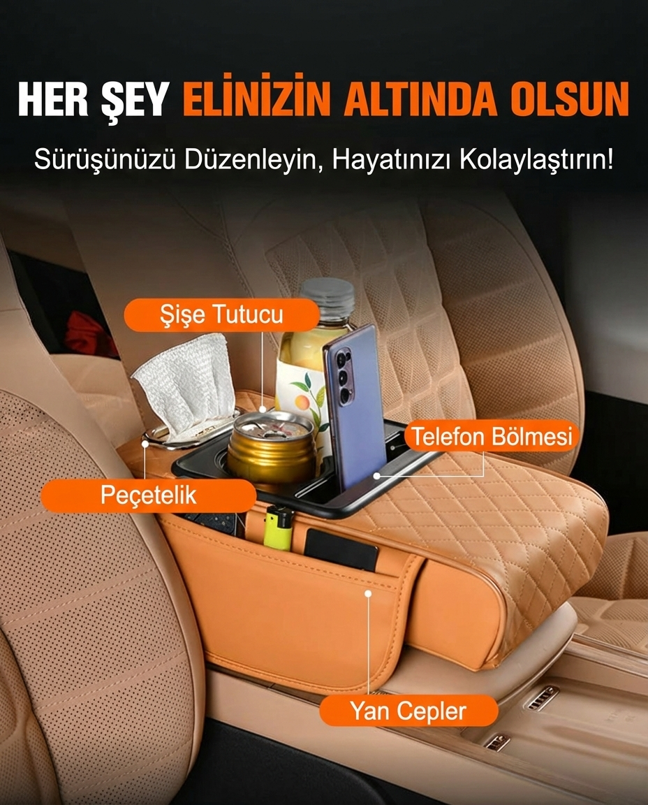 Müşterilerimiz, yan cepler ve entegre bardaklık bölmesi sayesinde araç içerisindeki karmaşanın saniyeler içinde çözüldüğünü onayladı.